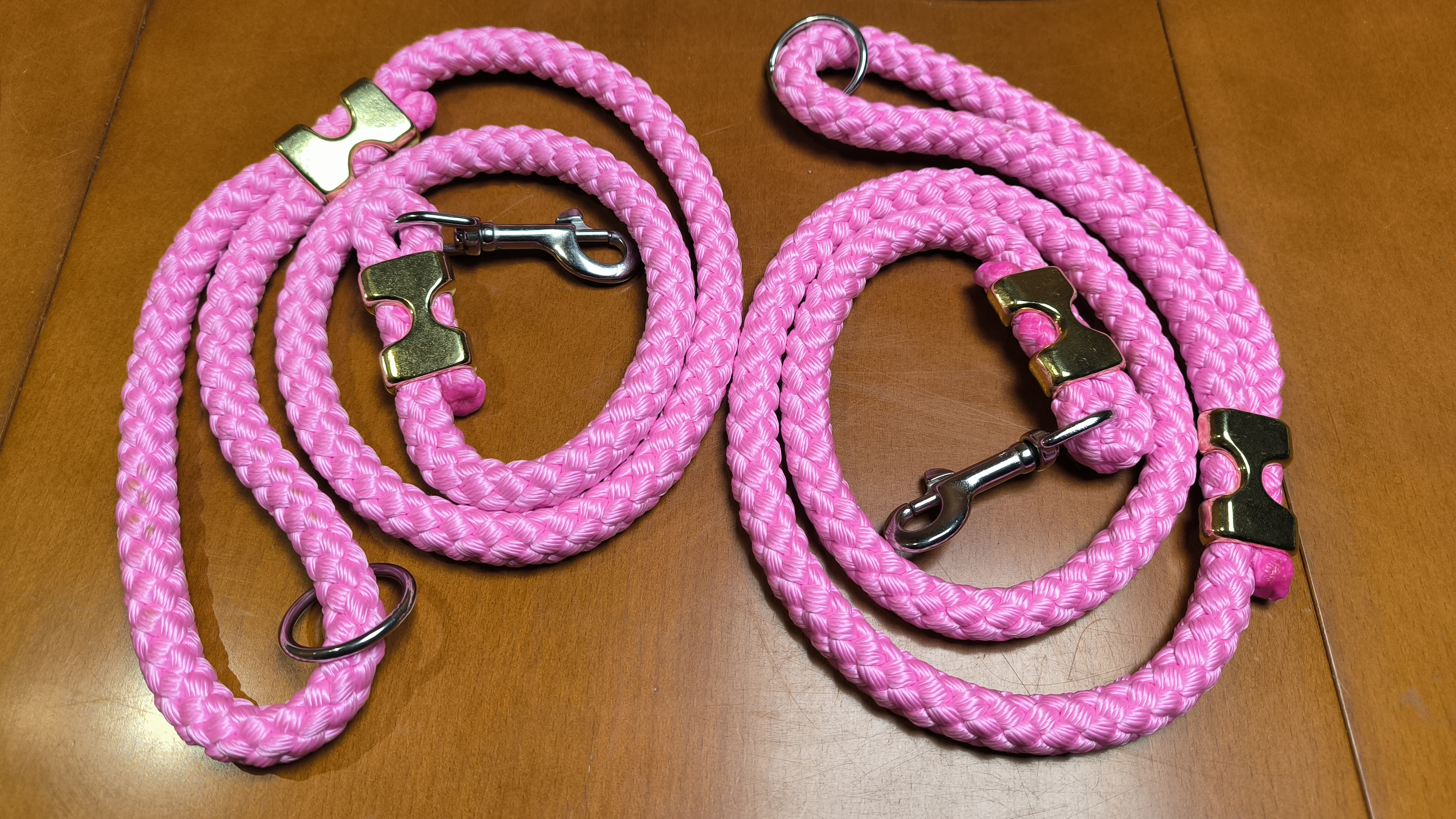 Karabiny lze různě kombinovat na koncích vodítek dle dohody nejsou na foto, vhodné jen pro lana max 14 mm, jen pro menší klidné psy.